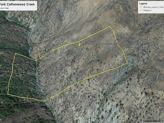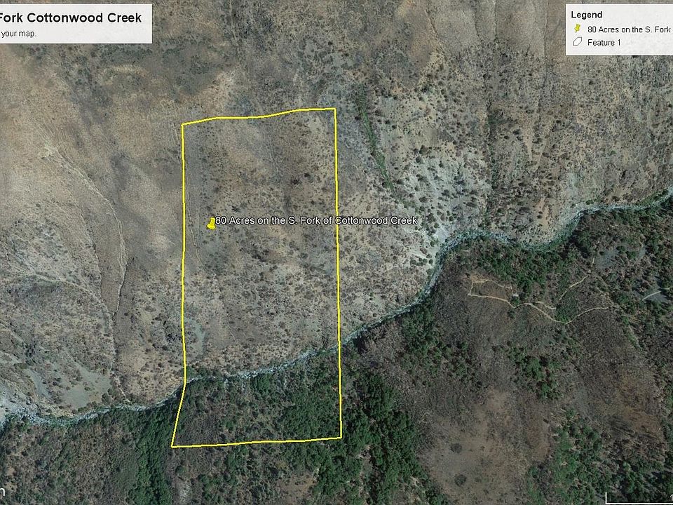 Remote recreational 80 acres on the South Fork of Cottonwood creek. Access may be an issue due to the lack of a road and easement for access. The listing agent has never seen the property in person. The best access would be off of Tomhead Mine road.