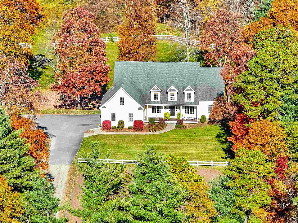 This stunning open-concept cape is perfectly situated on over 13 ACRES, just minutes from top schools, shopping, commuting and lovely Amherst Village. Past the 13-STALL BARN and through the lighted entrance, find this beautiful home set gracefully against a picturesque backdrop of groomed fields and leafy views. A large COVERED FRONT PORCH leads into an impressive 2-STORY GREAT ROOM centered on a natural stone fireplace and flooded with light from the oversized 3-SEASON SUNROOM with meadow views. A magazine-worthy CHEF'S KITCHEN is a perfect place to cook and entertain with vaulted ceilings, oversized island with 2nd sink, all new appliances including THERMADOR GAS COOKTOP, double ovens and high end Waterstone faucets along with a large dining area overlooking the back fields. Don't miss the handsome OFFICE W/ POCKET DOORS and the beautifully updated 1ST FLOOR PRIMARY BEDROOM SUITE including soaking tub, double vanity and tiled shower. Enjoy a birds eye view of the living room from the 2nd floor along with access to 3 large bedrooms and full bathroom. A bright WALKOUT BASEMENT has 9ft ceilings, a bedroom, 3/4 bathroom, french doors to a patio, room for a gym AND pool table--a great space for a GUEST OR IN-LAW SUITE! The large barn has heated kitchen, water, large hayloft, 2 tackrooms, and 2 riding rings, paddocks and trails make this a perfect gentleman’s farm. Cozy RADIANT FLOOR HEAT throughout fueled by efficient NATURAL GAS and with so many updates--this is THE ONE!