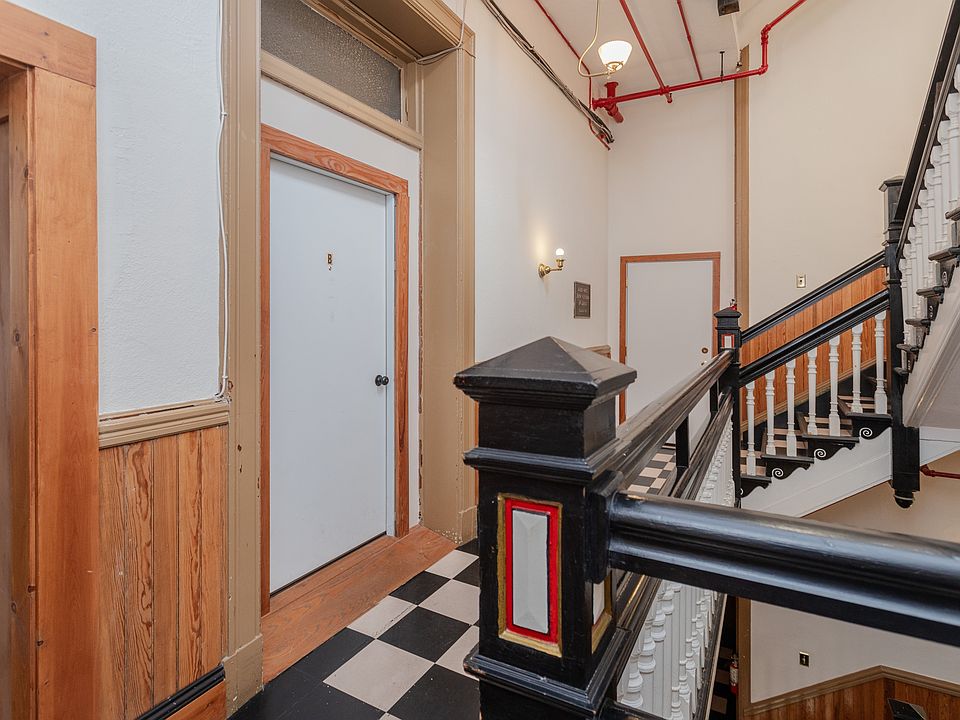 The building is filled with character like the black and checkered floors, a grand staircase that offers an amazing maze view to the bottom of the building and a number of indoor balcony spots to see other floors.