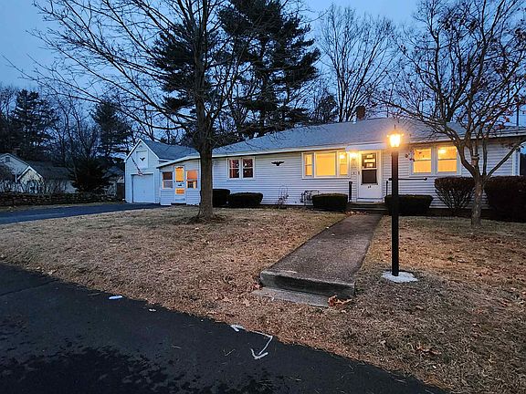 Welcome home! This lovely 3-bedroom hip-roof Ranch is nestled in a quiet Nashua neighborhood and lovingly maintained by the same family for decades. The spacious eat-in Kitchen comes equipped with stainless steel fridge, gas range, ceramic tile flooring & more-than-abundant counter & cabinet space! The 13-ft. countertop spans the length of the kitchen and is well lit by double-windows and also well-placed overhead lighting. Original hardwood flooring is found in all 3 bedrooms AND under the carpet in the Living Room. The longtime owner converted the smallest bedroom into a convenient 1st floor laundry/craft/hobby room, and can easily be converted back to a bedroom. Easy access to outdoors via 3 convenient entry/exit points from the Kitchen (side door), Living Room (front door) and Den (sun room). The sprawling basement has a large workbench and cabinets for your tool storage, a walk-in cedar closet and a bulkhead door for easy access. Single-car detached garage with auto-open door for your car, motorcycle, lawn & garden tools, etc. The large & level back yard awaits your gardening ideas, with some rock gardens & perennials just waiting to greet you in the spring! Updates include window replacement, updated heating system & hot water tank. Fantastic location, 5 minutes from Route 3, Rivier University, Nashua Country Club, & Downtown Nashua restaurants & shopping! Public Water & Sewer, Natural Gas. Quick closing is possible. Delayed Showings start Thursday December 19.