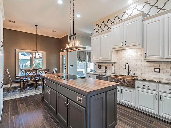 This gorgeous one level 3 bed, 3 bath home has it all! Soaring ceilings, plantation shutters, 2 fireplaces, built-ins & bamboo wood floors throughout. Take your pick of two master suites with updated bathrooms, which include new quartz and Granite countertops, cabinets, and tile shower. Completely remodeled gourmet kitchen in the spring of 2020, with granite countertops, SS appliances, 46" cabinets, 2 charging stations, a copper sink, & a butcher block island with plenty of storage. Other upgrades include; Pella Architect Clad windows, a TSW drive over underground storm shelter in the garage, generator hook up, and wifi enabled garage door openers. New HVAC was installed in 2010. Outside you will find enough room for a 16 X 30 pool and natural gas hook-up, for your grill.