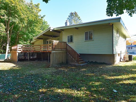 Contemporary raised ranch on cul-de-sac in a great neighborhood with easy access to Canton center, Cobbs Corner and the train. Open floor plan w/ beamed sunken living room and fireplace. An abundance of natural light provided by the bank of living room windows flows through the open floor plan. The living room adjoins dining room and kitchen w/slider that leads to a large deck. The Main bedroom has a half bath. This home has a fully finished lower level with half bath, fireplace, and laundry room. There is a one car garage, plenty of storage space, vinyl siding, fully fenced yard, central air, new roof and more.