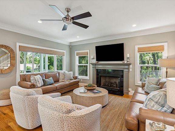 Located on a private lot framed by elegant live oaks, 13 Wills Way is a beautifully updated 4-bedroom, 3.5-bath home on Isle of Palms. Recent updates include new windows, a new metal roof, thoughtful landscaping, and artificial turf in the backyard featuring a putting green. The property is conveniently situated a short walk from the beach, a few blocks from the IOP Recreation Center, and a quick golf cart ride to the IOP Marina and various dining, shopping, and entertainment options on the island.The home captures your attention with a wide staircase leading to a welcoming front porch that spans the full length of the house. Once inside, a large open foyer leads into the heart of the home. To the left of the foyer, a sophisticated dining room features a gorgeous chandelier,French doors opening to the front porch, and easy access to the adjacent kitchen. To the right, the 4th bedroom, currently serving as an office, offers a large closet and direct access to the bath on this level, providing versatile space to suit a variety of needs. At the rear of the home, the open floor plan includes a spacious living room, a dream kitchen, and a second dining area. The kitchen boasts a desirable layout with stainless appliances, ample storage cabinets, and island seating for two. The oversized living room features a gas fireplace and is perfect for gatherings. French doors lead out to an expansive rear porch overlooking the landscaped backyard. Upstairs, the owner's suite and two additional guest rooms all feature en suite baths. The owner's retreat includes a large seating area, dual closets, and access to a screened porch with a swing bed. The updated owner's bathroom features a walk-in shower, dual vanities, and a separate water closet. The front guest bedroom has a private bath and French doors leading to a large porch, while the second guest bedroom also has a private bath and access to the rear screened porch. The exterior of the home offers numerous opportunities for outdoor enjoyment, including double porches on the front, a large porch off the main living area, an upstairs screened porch at the back, and additional covered patios in the landscaped backyard, which is fully enclosed with a privacy fence. There is ample room to add a pool, with initial drawings available for convenience. Additional features include: * New metal roof * New windows * New outdoor shower with hot water * New landscape lighting * New refrigerator * Updated light fixtures * New turf grass with putting green * Rinnai gas tankless water heater * Whole house gutters with leaf guards * Beautiful new landscaping with native palms and hydrangeas * Great ocean breezes and the sound of surf most evenings The beautiful furnishings (with a few personal exclusions) can be purchased on a separate bill of sale for a truly turnkey experience.