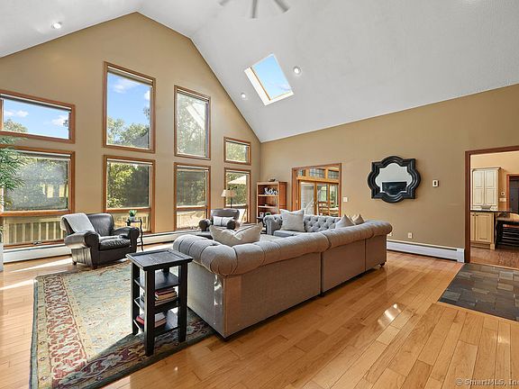 An Unmatched Opportunity Awaits! This immaculate, custom-designed contemporary showcases five generously sized bedrooms and six-and-a-half gracefully appointed baths, crafted with both flexibility and comfort in mind. The adaptable floor plan offers the luxury of a primary suite on either the first or second floor. Begin your day on the serene wrap-around front porch, perfect for quiet mornings with a cup of coffee or unwinding as you watch the sunset paint the sky in the evenings. The chef's kitchen is a culinary masterpiece, featuring a spacious island, skylights, abundant storage, Wolf six burner natural gas stove, and Gallery Side by Side Refrigerator and Freezer. Designed to meet every culinary need, the kitchen opens to the bright sunroom that flows seamlessly onto an expansive deck overlooking a vast, private yard, a chef's garden for your fresh harvests, and a charming kids' log cabin nestled on the property - an enchanting retreat for little adventurers. The great room captivates with dramatic vaulted ceilings and a cozy woodstove, while the spacious formal living room and dining room boast beautiful bay windows and wood burning fireplace-- ideal space for intimate gatherings. The second floor enjoys three bedrooms, loft area, large bonus room, and three remodeled full bathrooms. The garden level truly distinguishes this residence with a beautifully finished and thoughtfully appointed in-law suite or au pair quarters, complete with its own private entrance, living room, kitchen, full bath, and two extra flex rooms. This suite ensures comfort and independence for multi-generational living and/or makes for luxurious guest quarters. Additional lower level features include a flex room that can serve as a homeschool classroom, training room, group workspace, or media room/bonus area. This home enjoys a three car attached garage and is perfectly secluded yet in a convenient location tailored for modern family lifestyles. Nearby amenities include public/private schools, shops, dining, walking trails, Ski Sundown, Farmington River, Litchfield County, Bradley International Airport, Boston and New York both about 2 hours away, interstates & more.