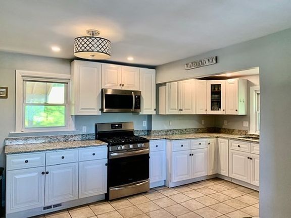 Updated and Well Maintained 3 bedrm colonial situated on double lot with easy access to walking trails and Crystal Lake. Enclosed front porch with new flooring leads you into a tastefully renovated first floor with open concept, new hardwood floors, new walls, new ceiling, and recessed lighting. Eco Bee thermostat heating system installed in January 2019. New radon mitigation system. Kitchen features brand new stainless steel appliances, newly painted white cabinets with granite countertops which leads into dining room, perfect for family gatherings! Relax on your deck which overlooks backyard and enjoy pretty views of all four seasons. Paved area provides additional parking for guests. Conveniently located with easy access to major highways and commuter rail. Easy walk to downtown Wakefield where you will enjoy the many shops and restaurants.Take a stroll around picturesque Lake Quannapowitt offering many recreational activities.All offers due by 6 PM 5/17/23 - multiple offers in hand