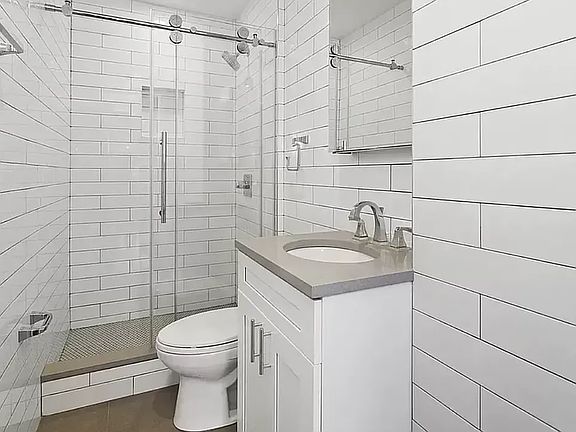 - Brand new subway tiled bathroom with beautiful glass stall shower