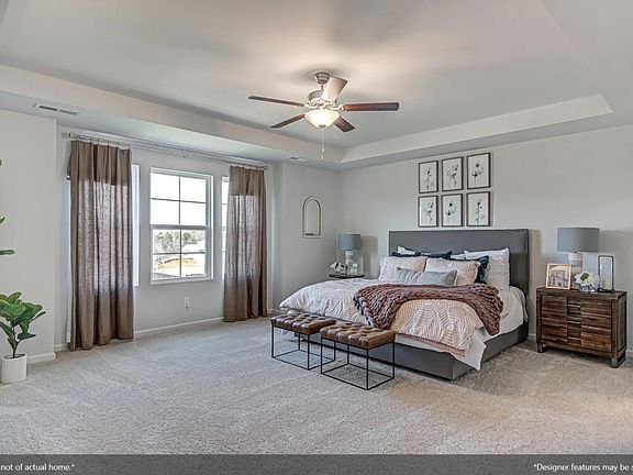 MOVE-IN BY FEBRUARY! Welcome to the Russell, a thoughtfully designed two-story home offering over 2,500 square feet of living space and almost an acre of land. This home has a perfectly balanced open-concept living with privatacy and functionality.Step inside to discover a bright, open first floor featuring a spacious great room that flows seamlessly into the modern kitchen and casual dining area—ideal for gatherings and everyday living. A flex room near the entry can easily transform into a home office, formal dining, or playroom. Upstairs, enjoy a private primary suite with a luxurious bath, dual vanities, and large walk-in closets. Two additional bedrooms and a full bath offer ample space for family and guests.