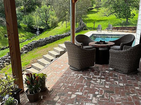 Discover Timeless Elegance In Sutter Creek’s Hidden Gem Step into luxury with this stunning 3 bedroom, 3 bath, 2650 sq ft masterpiece nestled on 1.3 acres of serene Creekside property fed by its natural waterfall and complete with a sparkling pool. Built in late 2020, this modern home seamlessly blends historic heritage and natural beauty. Exquisite Interior Prepare to be captivated by the soaring vaulted canopy in the living and dining areas, spacious 10 ft ceilings, and 8 ft custom doors that create an atmosphere of grandeur. Beautiful white oak hardwood flooring flows throughout, adding warmth and character to every room. The gourmet kitchen boasts dual dishwashers, an under-counter microwave, a 7-burner stove, and quartzite countertops, perfect for the discerning chef. Outdoor Oasis Relax on the all-brick front and back porches, listening to the soothing sounds of your private creek and waterfall. Take a refreshing dip or drift about gracefully as you unwind in your sparkling pool – this tranquil setting offers the perfect backdrop for entertaining or quiet reflection. Convenience Meets Charm Minutes from community, but miles from congestion. Experience small-town living with modern amenities at your fingertips. Enjoy full city services for water, sewer, and gas, while being just a 7-minute stroll from the charming main street of Sutter Creek, “The Jewel of California’s Gold Country”. Additional Features * Spacious guest suite upstairs for visitors or multi-generational living. * Inviting Pool that enhances your outdoor enjoyment. * A historic 165-year-old Chinese stone wall accents the property. * Enviable standup, walk-through attic space. * 1.3 acres of lush landscape, providing privacy and natural beauty. * This recent build offers modern construction and energy efficiency. Nothing Compares Don’t miss this rare opportunity to own a piece of paradise. Schedule your private tour today and fall in love with your dream home in Sutter Creek.