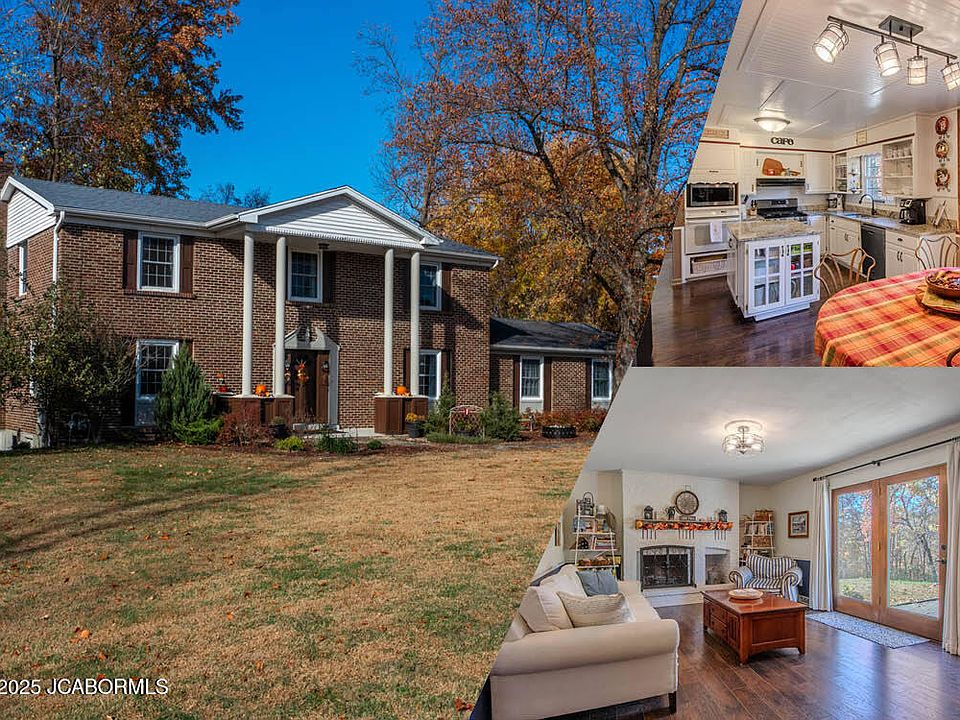 This 5 bed, 2 1/2 bath home with numerous updates is nestled on 6.5 level acres in a quiet subdivision with easy access to neighboring cities. Enter the spacious foyer that flows into the formal dining room. The kitchen features granite countertops, abundant cabinetry, a gas range + electric oven. Enjoy time with friends & family in the living room by the fireplace or step out onto the patio to take in the view. With another room on the main level that could be used as bedroom & 4 bedrooms upstairs, this home has plenty of space! Downstairs boasts a large family room, library with built-in bookcases, & plenty of storage. The wooded acreage has tons of potential while the open areas are perfect for lawn games, gardening, or adding a pool. Rare blend of in-town living with country privacy.