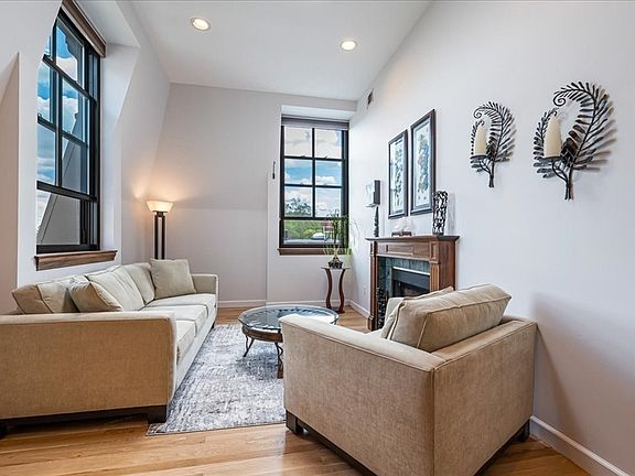 Situated on a charming cobblestone street in the Historic South End, this 1 bed-1 bath penthouse unit comes complete with 1 deeded on-site parking space. This residence features 11.5 ' soaring ceilings and expansive windows, which illuminate the space with natural light. The open concept living/dining area in anchored by a wood burning fireplace and gleaming hardwood floors. The updated galley style kitchen has modern appliances, custom wood cabinetry and stone counter tops. The spacious bedroom has fantastic ceiling height, plus excellent closet & storage space. The bathroom is thoughtfully designed with modern tiles, fixtures and tub/shower with glass enclosure. Additional conveniences include in-unit laundry and central AC. Dartmouth Square is walking distance to a variety of South End & Back Bay shops, restaurants, and public transportation, making it an ideal location for anyone seeking both comfort and convenience in the heart of Boston.