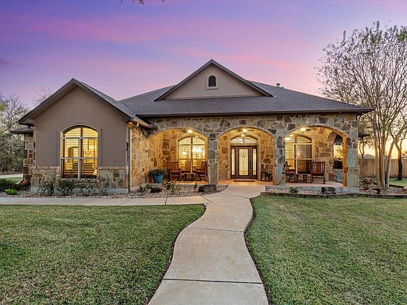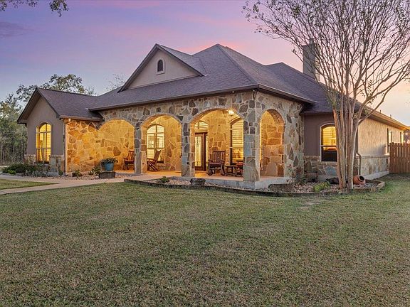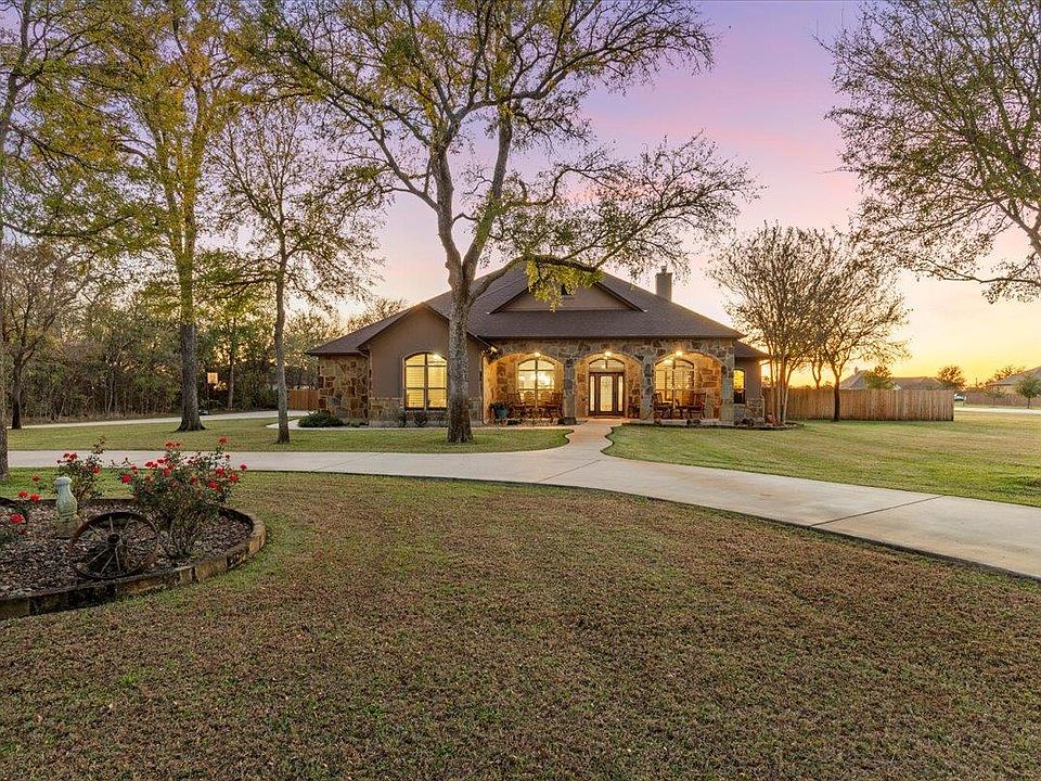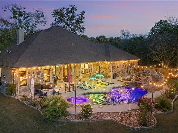 Located in the highly desirable Cassena Ranch subdivision, this beautifully appointed 4 bedroom, 3 bath home on just over 1 acre offers upscale living and a spectacular backyard pool. Step through the front door into an inviting foyer lined with a classic cream travertine tile. The spacious living room immediately impresses with its soaring vaulted, beamed ceiling, warm hardwood floors and stone fireplace making it a cozy setting for both everyday living and entertaining. The formal dining room also features hardwood flooring, creating an elegant space for gatherings. At the heart of the home is a true chef’s kitchen, thoughtfully designed with granite countertops, stainless steel appliances, abundant solid wood cabinetry, and generous sized center island. The cream travertine tile floors adding durability and style, while the open layout ensures the kitchen remains connected to the main living area. All three bathrooms echo the home’s upscale finishes with travertine tile and granite countertops, providing a cohesive, luxurious feel throughout. In addition, this home has other upgraded features, such as the 8' stained knotty Alder doors and custom wood shutters in every room. Step outside onto the outdoor living space with a built in grill overlooking the custom designed swimming pool with a waterfall and slide, complemented by a relaxing jacuzzi spa. Whether you’re hosting summer pool parties or enjoying quiet evenings under the Texas sky, this backyard was built for enjoyment. All this and more situated perfectly on a meticulously landscaped corner with ample yard space, mature plants, and a sense of privacy rarely found so close to town. With its blend of high end finishes, thoughtful design, and resort-style outdoor amenities this Cassena Ranch home delivers the best of country living with the convenience of being just minutes from downtown Bastrop shopping, dining and entertainment.