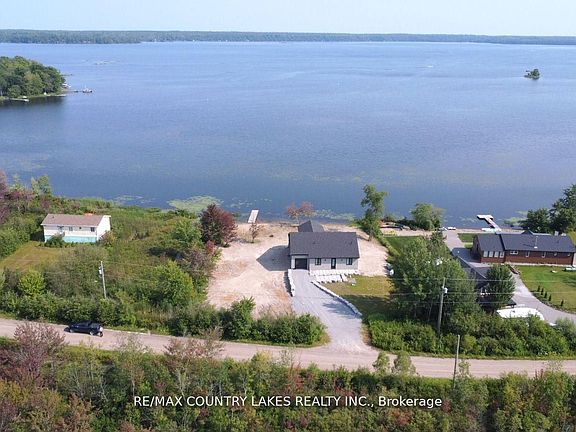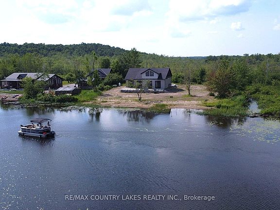 This exceptional 4-bedroom, 4-year-old custom-built home boasts 171 feet of prime waterfront on the serene shores of Head Lake. Designed with open-concept living in mind, the main living area features cathedral ceilings, a spacious living and dining room, and a walkout to a lakeside patio with breathtaking views. The modern kitchen is a chef's dream, complete with stainless steel appliances, a wine fridge, and an oversized island perfect for entertaining. The primary bedroom offers a private 3-piece ensuite and walk-in closet for added comfort and convenience. Additional features include main floor laundry combined with utility space, a stackable washer/dryer, hot water on demand, propane forced-air heating, and direct access to the attached single-car garage. A second-floor 45 x 18 loft area is framed and spray foam insulated, with a roughed-in bathroom ready to be finished to your taste. Enjoy southern exposure, a sandy shoreline, and a 40-foot dock ideal for boating, swimming, and fishing. Conveniently located just 2 hours from the GTA and within 40 minutes of Orillia and Casino Rama.