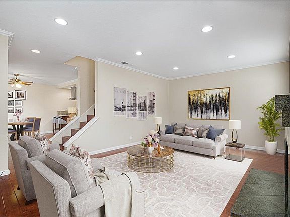Spacious & updated townhome style condo in the desirable Baroni Green Community! Corner/end unit in a great central location within close proximity to 85/87, shopping & dining. Updated kitchen with granite counters, induction cooktop & stainless steel appliances. Amenities include 3 large bedrooms, primary bedroom with balcony, breakfast bar in the dining area, wood flooring, recessed lighting, double paned windows, wood burning fireplace, central heat & AC, interior laundry and an attached 2 car garage for easy entry! Community pool, spa, clubhouse & playground!