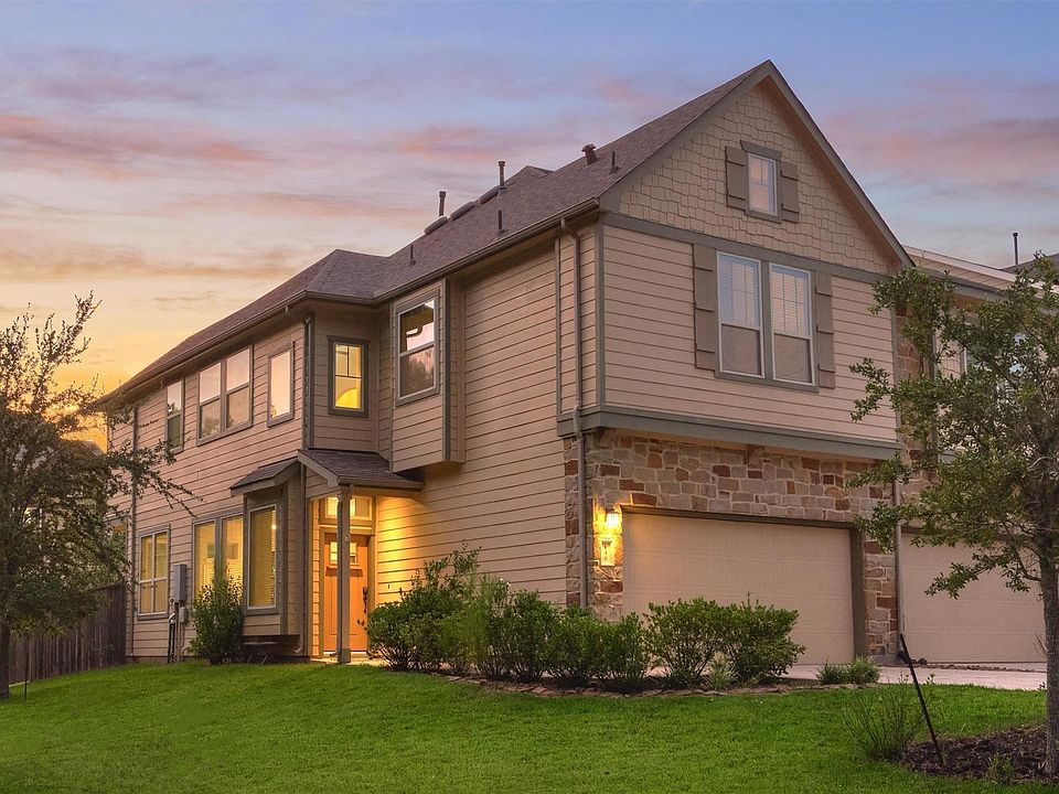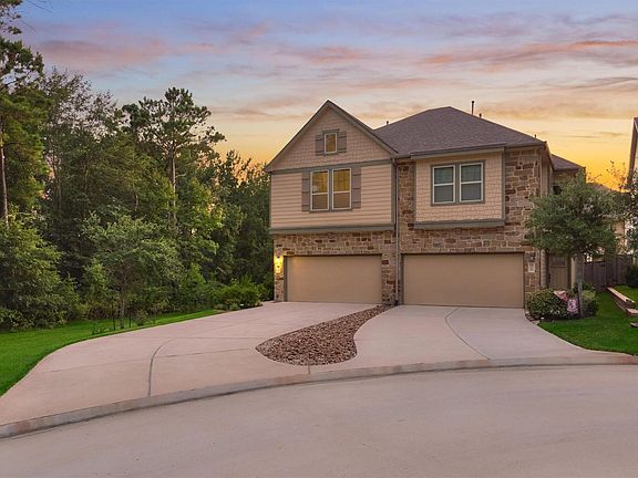 Rare Find! Premium over-sized private cul-de-sac lot! Stunning Chesmar townhome "Bungalow plan". Move-in-ready! 3 bedroom, 2-1/2 bath home located on a greenbelt with no neighbor to one side. This property features new paint, water softener, tile floors, upgraded carpet, kitchen island with upgraded granite, breakfast bar, tile backsplash & pendant lighting. Highly desired floorplan with open living, kitchen & breakfast area. Upstairs boasts large primary suite with spa-like bath & large walk-in closet, gameroom, two secondary bedrooms & spacious utility room. Large private backyard with an abundance of green space in front yard and nestled next to private greenbelt. Come enjoy everything Woodforest has to offer with exciting additions everyday! Walking distance to Elementary school, Pools, Splash Pads, Parks, Walking trails, Sports fields including soccer/basketball/tennis courts, grocery pharmacy, restaurants, salons & gyms. Don't miss this turn-key property on an incredible lot!