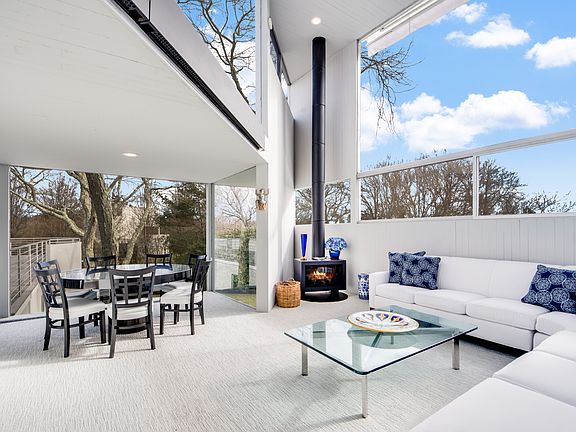 Here is a rare opportunity to own this widely publicized modern work of art. This is one of only two properties on Bluff Road with a grandfathered in tennis court on a one +/- acre lot. The living area has a soaring double height ceiling with large windows on all sides providing plenty of sun. There are two levels and a roof deck with ocean views, a private pool, lawn, and plenty of outdoor space to entertain. The first floor has 3 bedrooms plus the master suite. Just a quarter mile to one of the best ocean beaches in the Hamptons.