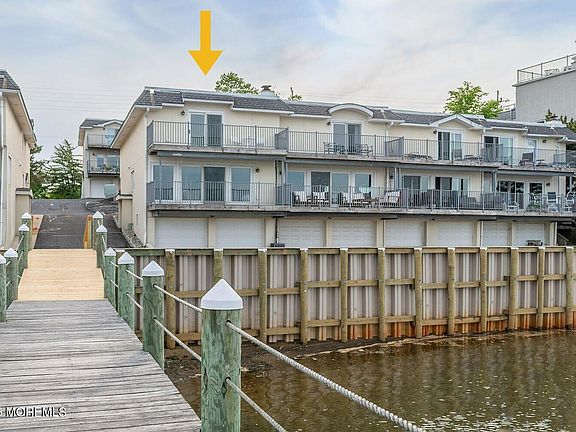 LUXURY LIVING ON THE NAVESINK RIVER AT MARA VISTA! Welcome to this exceptional waterfront END-UNIT townhome, perfectly positioned along the banks of the Navesink River. From the moment you step inside, you're greeted by floor-to-ceiling river views and a bright, open layout that blends high-end design with everyday comfort. The kitchen is truly the heart of the home—designed to impress and built for function. A massive Taj Mahal quartz island anchors the space, surrounded by custom white oak cabinetry, Bosch stainless steel appliances, a statement range hood, and champagne-finished fixtures. The eat-in area offers plenty of room for casual dining with river views that make every meal feel special. The adjacent living area is warm and inviting, with sliders that open to a spacious balcony - perfect for taking in the breeze and soaking up the scenery. Throughout the main level, you'll find thoughtful details like crown molding, recessed lighting, and solid core doors that add a sense of quiet luxury. The entry foyer includes a custom niche for coats and shoes, along with a stylish powder room for guests. Upstairs, the primary suite is a serene retreat with sweeping views of the Navesink and a private balcony. The suite also features a large walk-in closet with built-in organizers, two additional closets, and custom drawers. The en-suite bath is spa-caliber, with a fluted tile walk-in shower, built-in bench, rain head, and champagne fixtures. A double vanity with electric mirrors, makeup station, and separate water closet complete the space. Two additional bedrooms, a well-appointed full bath with banded ceramic tile and glass shower doors, and a laundry closet complete the top floor. The lower level offers a flexible bonus room ideal for a home office, den, or guest suite, along with another full bath featuring a walk-in shower with wood-look tile. A two-car garage provides plenty of storage and convenience, and the deeded boat slip makes waterfront living easy and accessible. Every inch of this home has been thoughtfully designed and beautifully finished. With unmatched views, high-end upgrades throughout, and a truly one-of-a-kind setting, this townhome is not to be missed.