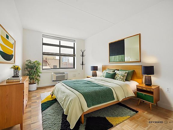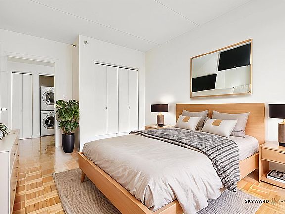 The unit includes an in-unit washer and dryer, and large open kitchen with modern appliances. The apartment has large windows that get's tons of light. Beautiful hardwood floors run throughout the apartment, which also includes through-wall A/C in every room. The building offers a full suite of amenities: 24-hour attended lobby, fully equipped fitness center, landscaped courtyard, resident lounge, and on-site parking garage.