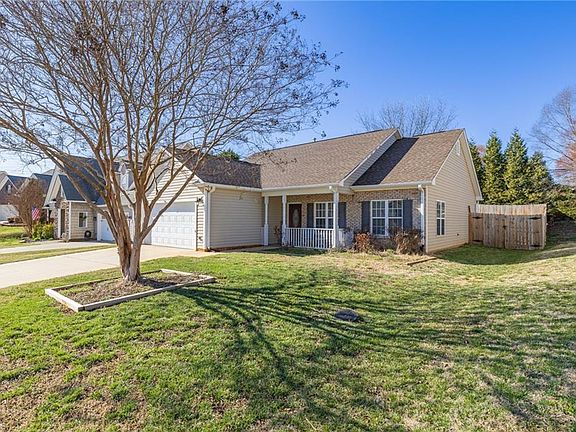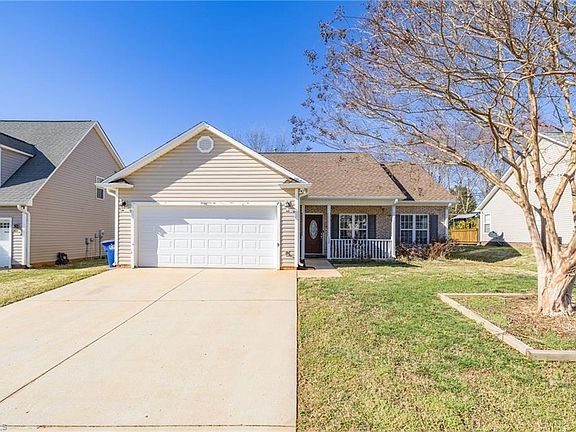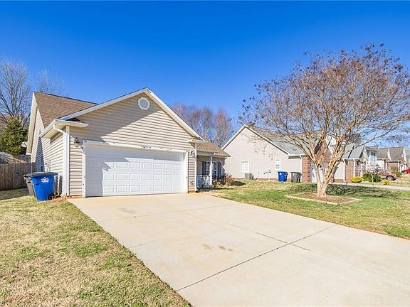 Lovely ranch, centrally located in close proximity to Kernersville shopping and restaurants, with easy access to High Point and Greensboro. This adorable home has a front porch, a living room with cathedral ceilings, a fireplace, lots of natural light. The living room opens up into the spacious eat in kitchen that features solid surface countertops, a tiled backsplash and tiled floor. The primary bedroom has a trey ceiling, large walk in closet, primary bathroom with a walk in shower and double sinks. The large paved patio in the backyard is perfect for entertaining or simply to enjoy your morning coffee. There is a 2 car garage to complete this great home!