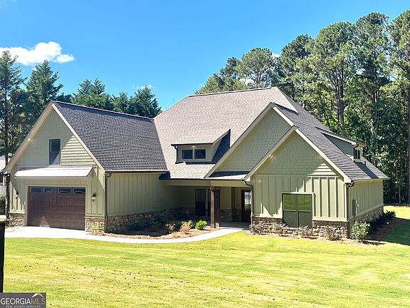 This stunning Craftsman home blends timeless character with modern comfort, offering over 2,900 square feet of finished space on a quiet, half-acre lot near the hospital in Calhoun. From the moment you arrive, the curb appeal impresses-stonework, board and batten siding, and a welcoming front porch framed by timber columns set the tone for what's inside. Step through the double doors into a soaring foyer that opens into a vaulted great room filled with natural light. The open layout flows seamlessly into a designer kitchen featuring a large center island, pantry, and attached breakfast room, with direct access to a spacious covered grilling porch-perfect for entertaining year-round. The primary suite is privately tucked away and offers the retreat you've been waiting for: oversized bedroom with boxed ceiling, serene backyard views, and a luxurious bathroom with dual vanities, soaking tub, seated walk-in shower, and a huge closet. Across the home, two additional bedrooms each enjoy private vanity areas and walk-in closets, joined by a shared Jack and Jill bath. A well-placed half bath, mud bench with storage, and laundry room add everyday convenience. Upstairs, a large finished bonus room with a full bath creates the ideal flex space for guests, a home office, or media room. With a two-car garage, covered front and rear porches, and refined finishes throughout, this home delivers the perfect balance of beauty, functionality, and location. All just minutes from town, yet nestled on a peaceful street with room to breathe.