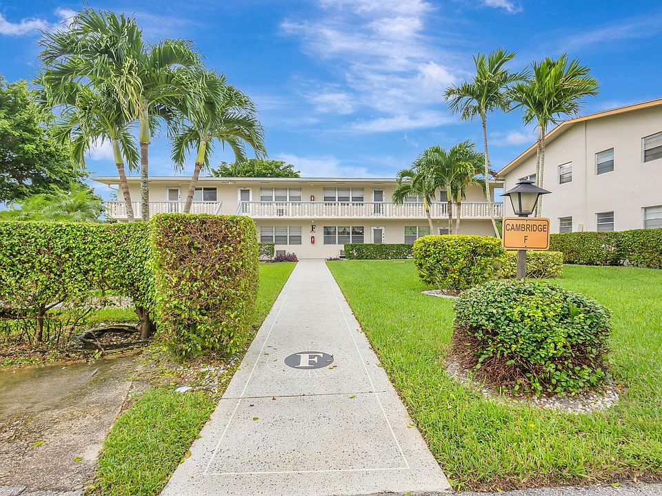 Welcome to 130 Cambridge F, a desirable ground-floor condo in Century Village West Palm Beach. This bright and airy 1-bedroom, 1.5 bath unit features a comfortable layout with plenty of natural light, a spacious living area, and a private enclosed patio overlooking the garden--perfect for relaxing or entertaining. The bedroom offers ample closet space and the convenience of first-floor living means no stairs. Enjoy the unmatched amenities of Century Village, including 24/7 gated security, a resort-style clubhouse, pools, fitness center, tennis, and a full calendar of social activities, plus complimentary transportation. Just minutes from shopping, dining, and the beaches, this home is ideal for those seeking an active, low-maintenance lifestyle in a vibrant 55+ community.