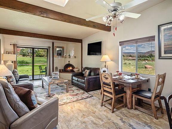 Enjoy scenic golf course and red rock views from the comfort of this newly upgraded, pet-friendly condo on the fairways, in the heart of the Village of Oak Creek. This well-appointed Wild Turkey condo has an open plan layout that is simple, functional and appealing with attractive furnishings and all the comforts of home. The living space features comfy couches, a TV for fun movie nights, and board games too. Glass sliders open out to a patio and a sitting area overlooking the Golf Course and spectacular red rock views. Whether you're dining alfresco under the stars or staying warm inside, the kitchen is well-equipped with granite countertops and all you need to prepare a home-cooked meal. Two bedrooms and two bathrooms. Both of the bathrooms have showers, the primary has a bath as well. This modestly priced condo is a great value with everything you need. Lease term 11/1/2025 - 10/31/2026.