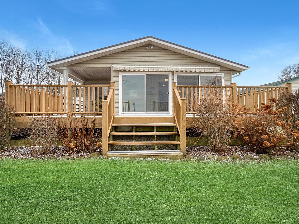 Wonderful 3BR/1BA ranch with 66 feet of frontage on Lake Puckaway! This great home offers an open concept living area w/incredible natural light and beautiful lake views! The open great room flows to the kitchen w/island, tons of storage, and complete appliance package overlooking the four season room w/access to the composite lake facing deck! Three spacious bedrooms with large closets, a full bath with walk-in shower, and an ample laundry room complete this great home. Outside, the outbuilding is an incredible bonus featuring two doors for easy access, a climate controlled workshop, and loft storage! Large partially fenced yard! Enjoy lake living with a pier included and easy access to the boat launch. Recent updates include refrigerator, furnace, and garage door! This is a must see!