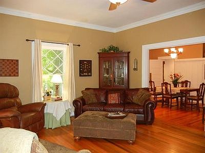 Craftsman Bungalow in Historic District. Secluded wooded lot behind First United Methodist Church two blocks from courthouse. Front and back full length screened in porches. Completely restored/refinished floors, walls and ceiling. Electrical upgraded to circuit breaker main panel with breaker sub-feed panel. Under floor plumbing replaced with PVC piping. Five year old appliances, gas hot water heater. Kitchen completely remodeled. Four year old roof with 30 year architectural grade shingles applied directly to decking. Listed with National Register of Historic homes but no restrictions. Original stone wall full length of lot on street side. Two blocks from city water park and 1/2 mile from Tennessee River overlook, fishing site. Bank appraised at 205,000 before new roof added.