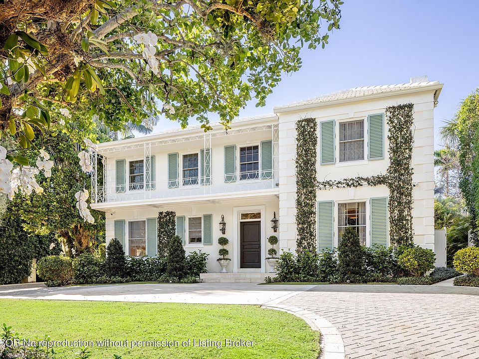 Gorgeously remodeled Monterey Colonial home designed by renowned Palm Beach architect John Volk. 6 bedrooms, 7 full baths, and powder room. Situated on a 14,500 +/- square foot lot, this home features over 7,000 total square feet, formal living room, and beautiful dining room. Formal entryway and large gallery hall. Oversized interior loggia leading to gourmet eat-in chef's kitchen and breakfast room. Iconic John Volk staircase leads to second floor den with Juliet Balcony. Expansive primary suite features gorgeous bath with stunning marble floors and details. Beautiful and serene landscaping surrounds large pool and covered patio. Gracious entry approach and parking with circular drive and driveway leading to 2 car air-conditioned garage. Guest apartment with terrace overlooking pool. Fantastic In-Town location with proximity to the Lake Trail, The Royal, and the Breakers.
