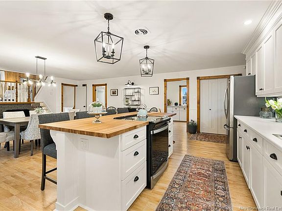 Welcome to this beautiful one-owner home, offering over 3,100 sq. ft. of living space on just over an acre of private, tree-lined land. From the moment you arrive, you’ll appreciate the peaceful country setting and the inviting covered front deck—perfect for morning coffee or relaxing at the end of the day. Inside, you’re greeted with bright, open-concept living. The stunning white kitchen is the heart of the home, featuring stainless steel appliances and a walk-in pantry with its own sink—ideal for meal prep or a stylish coffee bar. The kitchen opens to a cozy dining area with charming built-in window seats and a wood stove for added warmth. An expansive living room with a secondary dining space overlooks the serene backyard, creating an ideal spot for entertaining or quiet evenings at home. With 4 spacious bedrooms, there’s plenty of room for the whole family. The primary suite includes a walk-in closet and a 4-piece ensuite complete with a soaker tub. For convenience, main floor laundry is just steps away. Step outside and enjoy the possibilities of the large yard, featuring a gazebo, firepit area, and even a chicken coop that could double as a fun hobby or small side business. A triple detached garage offers abundant space for vehicles, storage, or a workshop. Just minutes from Costco, Irishtown Nature Park, amenities, and 2 golf courses. New metal roof 2025. Current taxes reflect non-owner occupancy; new owners can expect to pay approximately half the amount shown.