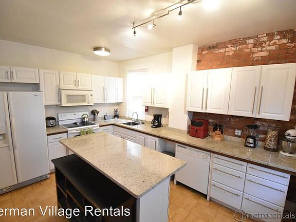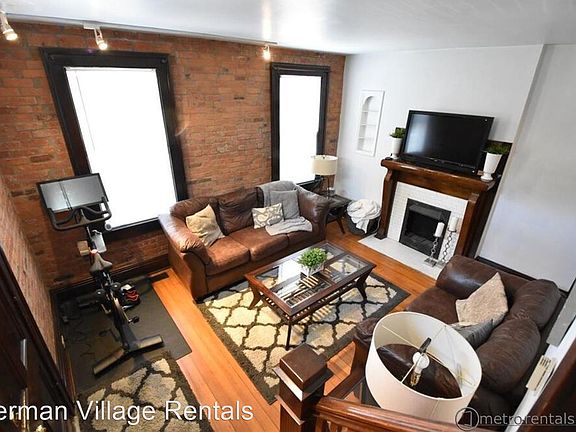 2 bedroom brick townhouse - Charming 2 bedroom townhome located in German Village, just steps away from Schiller Park. It features beautiful hardwood floors on the first level, exposed brick, decorative fireplace in the living room, and a large kitchen with granite counters, island with bar stool seating and dishwasher. Upstairs has two bedrooms and a bathroom with ceramic tile and beautiful full wall mirror. There is also a fenced in private brick patio, a storage basement, central AC, washer/dryer. Sorry, no pets. (RLNE2778246)