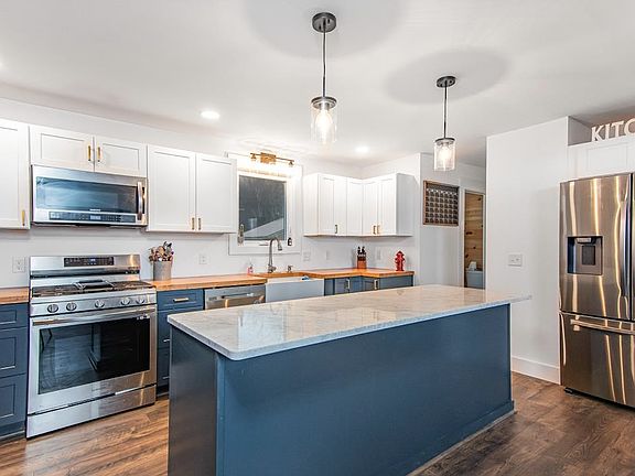 Nestled on 3 acres overlooking rolling farm fields is this completely renovated 4 bedroom, 2.5 bathroom raised ranch. Enter through the front door and head up the stairs to find a stunning open concept living and kitchen layout with immense natural light. The kitchen was beautifully designed with soft close cabinets, butcher block countertops, a quartz countertop island, and high end appliances. There is even a walk-in pantry! Also on the top floor is the primary bedroom with its own bathroom. Next to the primary bedroom is one of the additional bedrooms with a half bath off the kitchen. To top it off, the upstairs has an expansive walkout, covered, and screened-in deck equipped for a TV for the best summer hangout spot. Traveling downstairs you will find the remaining two bedrooms and full bathroom that have just been completed, which makes this space a great candidate for an in-law apartment, a private space for older kids before they leave the nest, or even turn the property back into a duplex! Across the basement you will find an oversized mudroom next to the walkout door as well as a bonus room that could serve as a second living room, bar area, and more! In addition to the amazing offerings within the home, the property also has two oversized garages! One is 30x50' with loft space just bursting with potential