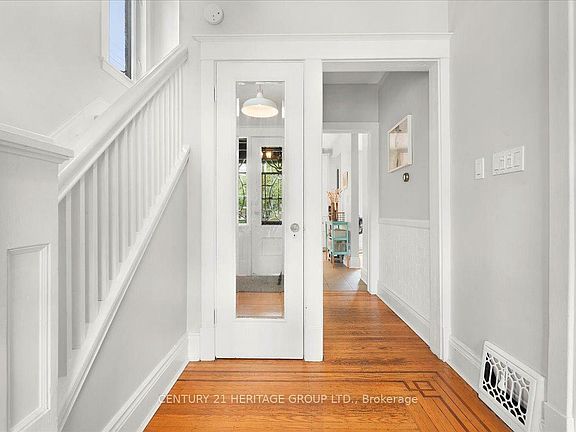 Nestled just beneath the escarpment on a quiet corner, this stunning character home blends timeless charm with modern luxury. From the moment you arrive, youre greeted by a beveled glass entry, rich inlaid hardwood floors, and a striking stone gas fireplace that sets the tone for the warm and spacious interior. The main floor offers an inviting living room, a formal dining room perfect for entertaining, and a fully renovated kitchen featuring sleek stainless steel appliances, quartz countertops, and custom cabinetry. Upstairs, youll find three generous bedrooms, each with ample closet space, and a spa-inspired bathroom complete with a glass shower and elegant finishes. But the true showstopper lies just one more level up. The top-floor primary suite is a dream come true. With its double vanity, freestanding floating tub, and an oversized glass shower, this bathroom is a masterpiece that will leave you breathless. The bonus? A beautifully finished basement with a large rec room, second kitchen, and yet another spa-like 3 piece bath with a glass corner shower, perfect for guests or in-laws. Situated on a landscaped, fully fenced corner lot with a detached single garage, this home offers nothing to do but move in and enjoy. Character, charm, updates, space, and a touch of nature, this is a true gem you wont want to miss!