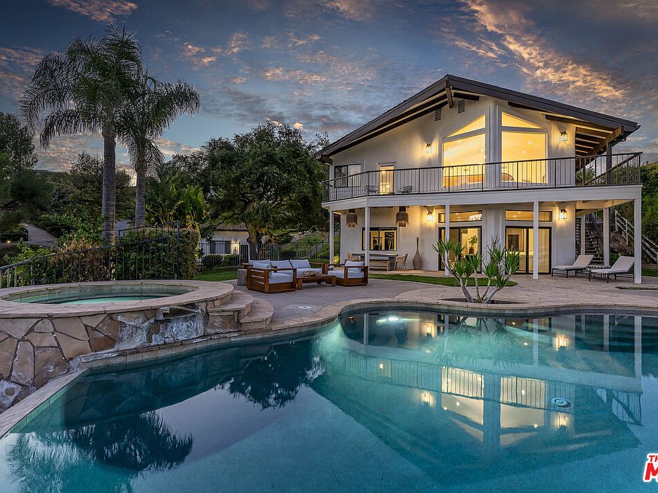 Welcome to 130 Dapplegray Road a striking Contemporary View estate set on a premier 1.2+ acre lot within the prestigious guard-gated equestrian community of Bell Canyon. Thoughtfully reimagined to capture the essence of refined California living, this residence blends architectural style, effortless comfort, and a seamless indoor outdoor connection. The main home features 5 bedrooms and 5 baths, introduced by soaring ceilings, hardwood and stone floors, and dramatic walls of glass that bathe the interiors in natural light. Formal and casual living spaces transition fluidly, designed for both grand entertaining and everyday ease. At the heart of the home, the chef's kitchen impresses with a large center island, professional-grade appliances, and striking Quartzite countertops opening directly to the dining area and great room for ideal gathering and hosting. The main-level primary suite is a serene private retreat, complete with a generous walk-in closet and a luxurious spa-inspired bath. Additional amenities include a gym, family room with bar, bonus room, and expansive view-framed living areas that showcase the surrounding treetops and city lights. A detached one-bedroom, one-bath guest house expands the possibilities ideal for extended family, a private office, or studio space. Outdoors, the property is equally compelling: a sparkling pool and spa, wide open patios for dining al fresco, and generous grounds offering room to play, unwind, and explore. Life in Bell Canyon provides an unmatched lifestyle, including community tennis courts, a world-class equestrian center, miles of scenic trails, and 24-hour guard-gated security all just minutes from the city, yet a world apart in setting and atmosphere. 130 Dapplegray Road is more than a residence it's an invitation to live beautifully.