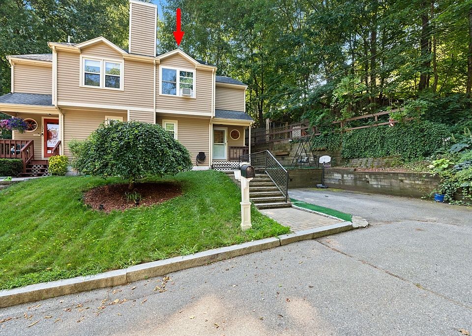 End unit townhouse style condo on a beautiful, tree-shaded cul-de-sac, featuring 2 bedrooms & 1.5 baths. The first floor hosts the half bathroom, a broad eat-in-kitchen with newer stainless appliances and the main living space. From there step out onto the tiered, private outdoor space, complete with large storage shed and play area. The upper floor features the full bath, both bedrooms and generous closet space. The beautifully finished basement provides ample space for extra living area, office, exercise room or anything else you can dream up. Condo fees are very cheap compared to equitable units in the area, the heating system was just replaced, hot water tank is young and the unit has been very well cared for overall.