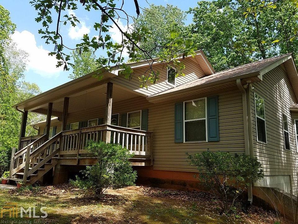 With over 3 acres of unrestricted, nicely wooded land this home offers some privacy and convenience just off Duncan Bridge Rd. It has 3 bed, 2 bath, over 1800 sf living area, has open kitchen and dining room with lots of counter space, rocking chair front porch and back deck, apx 1456 sf unfinished basement with 2 car garage and studded walls for additional rooms to finish out to suite your needs. An additional detached 24 x 32 workshop/garage with electric has plenty of room to tinker with big boy toys or use as storage or additional parking. Easy access to Cleveland, Helen, or Clarkesville.