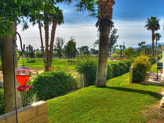 Conveniently located off Cook St. near the 10 Freeway lies the guard gated community of Desert Falls Country Club. This community is home to a beautifully updated move-in-ready single-story condo, with 2 bedrooms, 2 bathrooms, and 1330 sq. ft. of living space. Enter the charming living room, featuring tile floors, high ceilings, stack-stone fireplace and bar area, and views of the back patio. Adjacent to the living room is a separate dining area. The light and bright kitchen boasts quartz counters and stainless-steel appliances. The generous master suite has loads of closet space, with direct access to the back patio. The master bath has dual quartz vanities and a large walk-in shower. Your guests will appreciate the roomy 2nd bedroom and the separate full bathroom. Additional features include a separate laundry room and 2-car garage. Relax and unwind around the firepit on your large patio, with views of the Avondale golf course, while sipping your favorite beverage. Remodeled in 2018 and with no unit above, this condo offers privacy and comfort as a vacation retreat or full-time abode. One of many community pools is located close by. Desert Falls Country Club offers beautiful desert scenery, spectacular views, fitness and health center, lighted tennis/pickleball courts, clubhouse with restaurants that host numerous events, and an 18-hole, championship golf. Offered Turnkey Furnished, per Sellers' Inventory List. Come experience the best of Desert living!