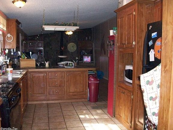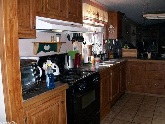 Large DW MH with nice front porch, vaulted ceilings, large front living room and dining area, kitchen has nice wood cabinets & tile countertops, black appliances, plenty of room for freezer in both the kitchen & laundry room which has storage above the washer & dryer. Back living room has cast iron wood burning stove, back porch was enclosed to make 4th bedroom. Both bathrooms have nice ceramic tile walls around tubs. Property has lots of road frontage and tons of trees. 2 lg storage bldgs. NO Minerals