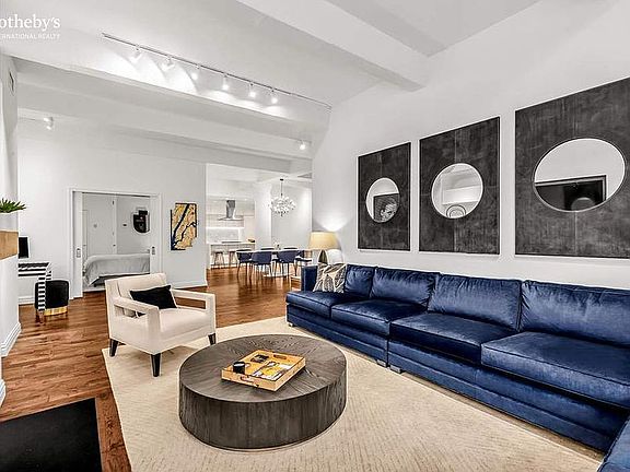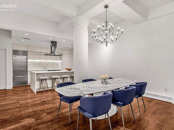 The perfect combination of entertaining and privacy, Apartment 3A is meticulously renovated and cared for. The open loft style unit has soaring 11-foot beamed ceilings, a grand living room, and a separate kitchen and dining space. Featuring a marble backsplash and counters and an island with a breakfast bar, the open kitchen offers tons of storage and Bertazzoni, Subzero and Bocsh appliances. Both the washer dryer and range are vented.