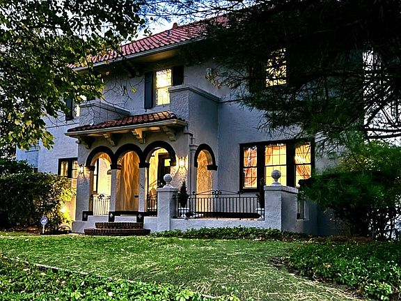 This stately Mediterranean villa near Bronxville is set high on a private, lushly landscaped large corner property. The flagstone walkway leads to a refined entry door with brass lion-head knocker and into the grand foyer featuring a sweeping curved staircase with distinctive balustrades. Center hall layout with all oversized rooms is perfect for entertaining and relaxing. Two sets of leaded-glass double French doors open to the ballroom-sized living room and elegant dining room, both with intricate moldings, gleaming maple floors and custom fireplace. All walls and ceilings are hand-crafted Venetian plaster. Sun-drenched wood paneled home office or first floor bedroom has new bay window and built-ins. A bath with gold fixtures is also on the first floor. The updated kitchen and butler’s pantry have stunning granite counters, a breakfast nook and handy mud room. Amenities include a lower level in-law apartment with full bath, separate access and expansion possibilities. Upstairs, the huge ensuite primary bedroom has its own private 220 SF terrace, cedar closets, and enormous tiled bath with separate shower room. The lower level, with rec room, laundry, full bath with shower, and playroom, accommodates au pair or in-law. The heated, two-plus car garage is below the house, with indoor direct access. Third floor has additional 1,500 SF with cathedral ceiling (not included in house square footage) with space for 5th and 6th bedrooms and full bath. New 200-amp service and new electric throughout. Freshly painted, inside and out. Very private yard has fully operable in-ground gunite mini pool that provides a special outdoor oasis. Massive stone walls, terraces, patios, and full property sprinkler system. Ludovici lifetime barrel tile roof is spectacular. Some furnishings included. Short walk to Metro North. NYC commute is 25-minutes from Fleetwood or Bronxville. Shopping in Fleetwood and Bronxville. Low taxes are before STAR reduction. MOVE-IN READY. Photos are real, not staged. Low cost per square foot.