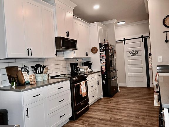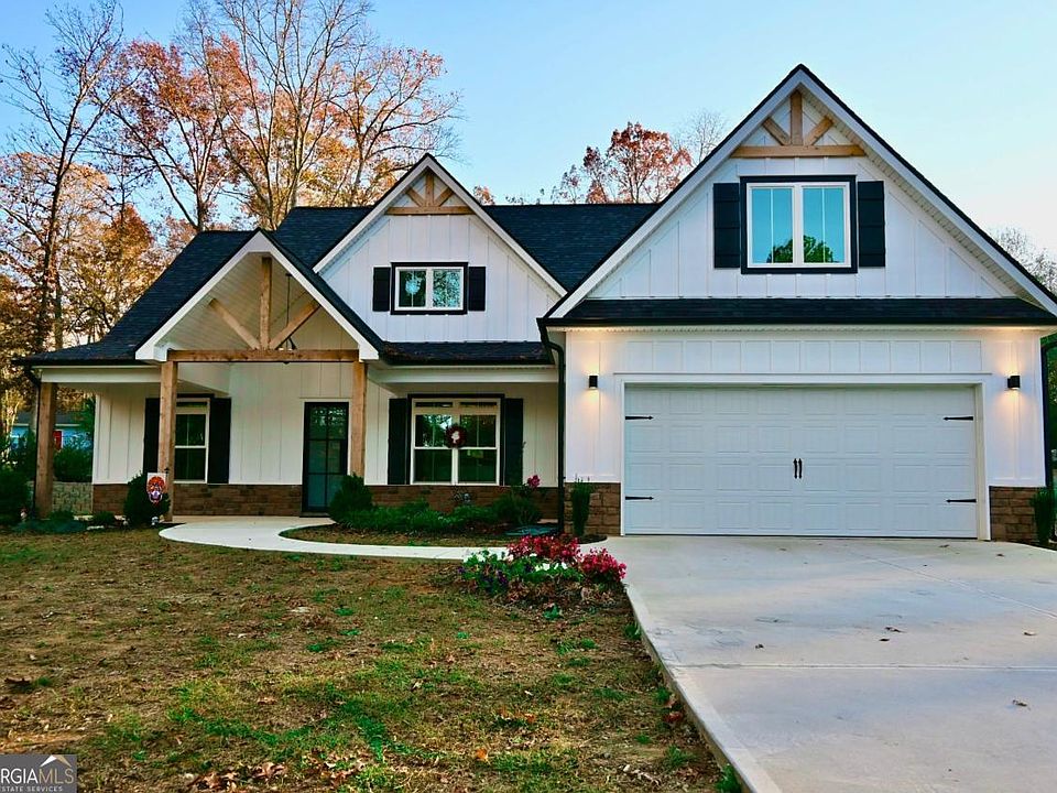 Custom-built modern farm-house located in Tyrone, GA, just 20 minutes from Hartsfield-Jackson airport, built on a private one-acre lot with mature trees. ZERO percent down payment option available. Seller open to paying closing costs for mortgage interest rate buy-down. Low maintenance exterior with hardiplank siding/board and batten, cultured stone knee wall, and vinyl soffits/porch and patio ceilings. Custom iron front door, 100% LED owner-selected black light fixtures, and extra foundation, window, and door insulation, all contribute to very low monthly power bills, even in the warmest and coldest months. Luxury vinyl plank flooring in all rooms, white shaker kitchen/bath cabinets with grey quartz countertops, matching Kitchen Aid black stainless steel appliances, and custom black plumbing fixtures throughout. Expanded, covered back patio is perfect for entertaining with extra lighting, ceiling fan, fireplace, and views of nature and area wildlife. Upper level has an expansive suite/multi-purpose room with ensuite bath and unfinished attic has the height and square footage for potential living space/additional bedrooms. Priced below most recent appraisal value, structures have been or will be removed on adjoining lot for new farmhouse style construction and $1M+ plus existing and upcoming home communities within 2 miles. Just a short drive to Town of Tyrone parks/shopping or a few miles to Peachtree City restaurants, etc. Sought-after Fayette County schools!