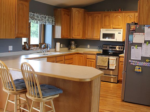 Wonderful country home sitting on over 36 acres, secluded and setting off the road for privacy, pole barn, attached garage and more! Home features 2480 square feet, plus a full partially finished basement with walkout and daylight windows. Lower level features 2 additional bedrooms with walk-in closets, family room and 3rd full bathroom with tile shower. Family room is designed to have a wet bar and gas fireplace. Seller will install carpet in basement or give allowance so buyer can choose! Good sized rooms through out! Main level features 2 bedrooms, large living room with wood burning fireplace, open kitchen and dining area with hardwood floors, plus a laundry room. Upper level is a private master suite with walk-in closet, private bath with whirlpool tub, spacious bedroom and loft area that is a perfect place for home office or sitting room. Newer windows on back side of house. Property includes tillable acreage, some woods and 28x32 heated pole barn with concrete floors and lean-to for additional storage. Wood stove will stay. Please give 24 hour notice for showing and we would also like to see know that you are preapproved before the showing.