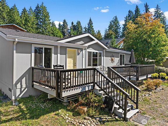 Welcome to lakeside living at Mason Lake! This charming 3-bed, 2-bath home offers breathtaking water views and direct access to one of the region’s most desirable lakes. Featuring an open-concept layout with vaulted ceilings, expansive windows, and a cozy fireplace, this home blends comfort and style. The kitchen boasts ample cabinetry and modern appliances, while the spacious deck is perfect for entertaining or enjoying serene sunsets. A large yard with private dock access provides endless recreation opportunities. Conveniently located just minutes from Shelton and Belfair, this property is ideal as a full-time residence or weekend retreat. Don’t miss your chance to own waterfront in Grapeview!