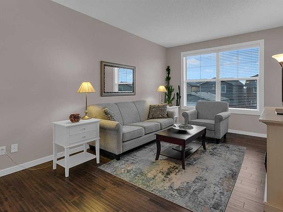 Step into contemporary elegance with this stunning, move-in-ready 4-bedroom 2.5 bath townhome with double attached garage in the highly desirable community of New Brighton. Offering over 1600 sq. ft of sophisticated living space, this property is perfectly suited for modern families, professionals, or first-time owners seeking comfort, convenience and quiet. Upon entry, the bright, open-concept main floor, showcases the gleaming hardwood floors and an abundance of natural light. The spacious living room flows seamlessly into the dining area and a chef-inspired kitchen, highlights stainless steel appliances, quartz countertops and ample cabinetry. Glass doors off the dining area lead out to your west-facing patio for effortless grilling and outdoor relaxation. Upstairs, you'll find three well-proportioned bedrooms. The generous primary suite is a true retreat, boasting a large walk-in closet and a luxurious 4-piece ensuite bath. Two additional well-sized bedrooms are perfect for children or guests, serviced by a second full bathroom with the convenience of a dedicated upper-floor laundry area. The lower level extends the living space with a fourth bedroom/office space/flex room and additional utility room with storage. Added convenience with a double attached heated garage plus guest parking directly across from the townhome. Located in a well-managed, pet-friendly complex, you're just moments from local schools, various parks, and sports fields and the renowned New Brighton Community Centre, offering year-round fun from splash parks to outdoor hockey, is a short drive away. Plus, the nearby shops, services, and dining of High Street in McKenzie Towne ensure everything you need is close at hand. Don't miss the chance to own an upgraded, stylish home in one of Calgary's most vibrant communities. Schedule your private viewing today!