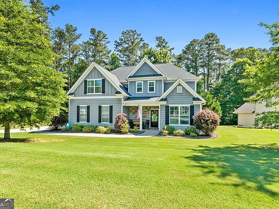 Lovely 4 bedroom, 2 1/2 bath craftsman style home built in 2016 convenient to Trilith, Fayetteville, and Peachtree City. For those looking for a well-maintained property, this is a one owner, pet free home which has been professionally cleaned twice a month. Main level includes office/living room, separate dining room, family room, powder room, and beautifully appointed kitchen w/ the latest in design, including granite and stainless steel appliances with gas range. Hardwoods in the foyer, powder room, dining room and kitchen. Second level offers a spacious owner's suite with a lovely bath with a tiled shower, separate soaking tub, double vanity, and a spacious walk in closet. Second level also includes three additional bedrooms, full bath, and the laundry room is located adjacent to the owner's suite for added convenience. Elegant lighting and upgrades throughout the home. The covered porch looks out over the private sodded backyard with a natural wooded buffer. The neighborhood amenities include pool, tennis, pickleball, basketball, playground and a walking path which connects to the public paths to the nearby schools and surrounding area.