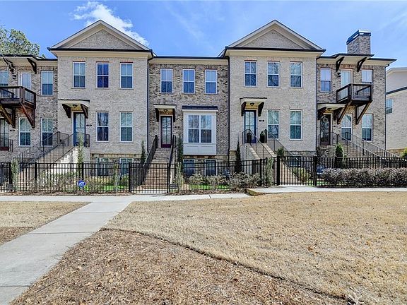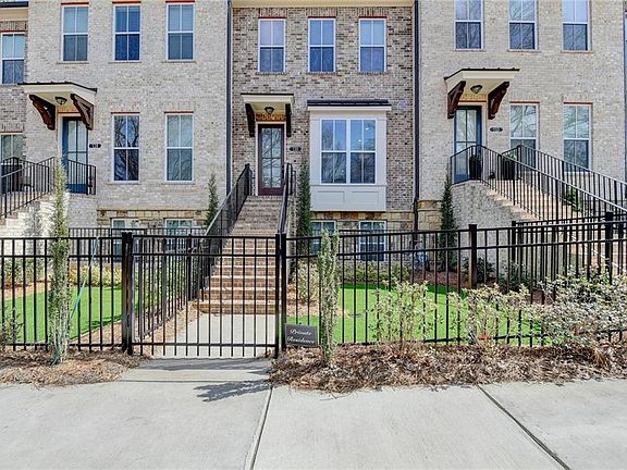 On the AlphaLoop and just steps from downtown Alpharetta, this gated Atley community townhome is only 2 years old. This Providence Group built Benton II floor plan features several upgrades including hardwood flooring throughout the home, ceramic tile, stainless steel appliances, double decks, and fenced front yard. The front door opens to a living room with a brick gas fireplace, wall mounted TV bracket, box bay window, and ceiling fan. The dining room comfortably seats 8 and features a polished chrome linear chandelier. The quartz kitchen island seats 3 and includes a large single bowl stainless steel sink. White cabinetry, herringbone ceramic backsplash, walk-in pantry, stainless steel French door refrigerator, dishwasher, oven, microwave, and 5 burner cooktop with dramatic stove hood all complete this friendly kitchen. This floor features a flex room for an office, den, breakfast room, sunroom, or playroom. Also, on this level is a covered deck, convenient laundry room with washer and dryer included and powder room. The upper floor offers a master bedroom with white brick accent wall, 2 large closets, a private bath with quartz countertop, double sinks, stepless entry tile shower and linen closet, The upper floor is completed with 2 guest bedrooms, each with access to an upper deck, 2 hall linen closets and full bath with tub/shower. The lower level of the home is fully finished with a 4th bedroom, 3rd full bath, large walk-in closet, and entry hall with coat closet. There is a 2 car garage and driveway with space for 2 more vehicles. The Atley community amenities include community garden area, mailbox pavilion, dog park, and swimming pool.