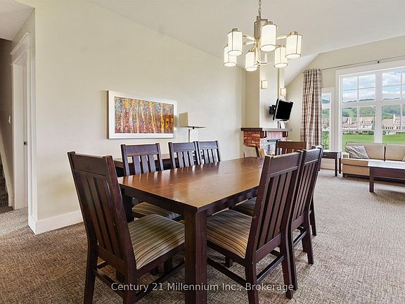 INCREDIBLE VIEWS! Experience mountain living with this exceptional CORNER 3 3-bedroom condo in River grass, boasting mesmerizing vistas of the Blue Mountain and the Golf Course. Approved Short Term Accommodation (STA) location, enhancing its appeal. The living room of this corner unit is suffused with natural light streaming through expansive windows, allowing unobstructed vistas of the mountains from the second level. This 3 bedroom, 2 bath haven offers an idyllic retreat, perfect as your personal cottage getaway or as a lucrative rental opportunity when not in use. The main level boasts an open concept design encompassing the living, dining, and kitchen spaces. Additionally, two bedrooms, a full bath, and a convenient laundry area grace this level. The Livingroom, features a cozy gas fireplace, extends to a spacious deck where you can bask in the sun while relishing the remarkable views. Cathedral ceilings amplify the sense of space while framing generous windows that perfectly frame the natural splendor. The upper level you discover the primary bedroom, complete with a king bed and a 3-piece en-suite, offering a tranquil retreat with both comfort and convenience. Bedroom 2 features a queen bed, while bedroom 3 accommodates two singles, and the living area's pull-out sofa provides additional sleeping space, accommodating up to 8 guests. River grass presents an array of amenities, including a seasonal summer pool and a year-round outdoor hot tub accompanied by change facilities. Delight in a stroll to the vibrant Blue Mountain Village, where an array of restaurants, bars, and shops await your exploration. As a member of the Blue Mountain Village Association (BMVA), access to the private Blue Mountain beach is within reach, mere minutes away. For added convenience, a Shuttle Service is available. Please note that HST may be applicable or can be deferred by becoming an HST registrant. A 0.5% Blue Mountain Village Association Entry fee applies.