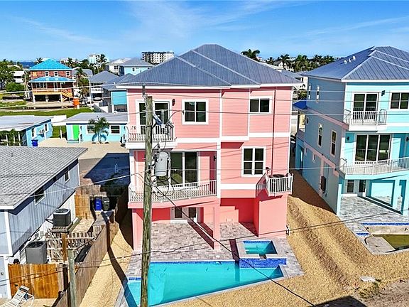 NEW CONSTRUCTION! NEW CONSTRUCTION!! NEW CONSTRUCTION!!! Stop searching. You've found it! this is the one. A just-completed, 4-bedroom, 4-bathroom island masterpiece with three private en-suites, a private elevator, and a heated pool and spa that rival a resort. With 2,212 square feet of elevated design, this home is brand-new, never lived in, and move-in ready — sitting squarely in a prime weekly vacation rental zone. What does that mean? No waiting on builders. No delays. No compromises. The headaches of planning, permitting, and construction? Already handled. All that’s left is you, the keys, and the lifestyle you’ve been chasing. Step inside and feel the difference: sunlight floods through impact-rated sliders, soaring ceilings open the space, and porcelain tile flooring brings sleek, modern elegance. The kitchen is sharp and stylish with granite counters, maple soft-close cabinetry, and stainless undermount sink. Every bath delivers spa-like comfort with frameless glass showers, granite vanities, and Moen fixtures. And when it’s time to move between levels, your private 3-stop elevator does the work with ease. Step outside and the excitement grows. Your heated pool and spa sparkle with LED color lighting, a raised spillover spa, and a sun shelf designed for lounging in style. The paver lanai sets the stage for long afternoons, late nights, and everything in between. Exterior fencing and stone landscaping will be completed prior to closing, creating a polished, turnkey finish. And the location? Nothing short of incredible. From your front door it’s a quick 2-minute walk to Sandy Bottoms Bar & Grill — a local favorite where energy, food, and fun are always flowing. Just beyond sits The Whale, another island icon for music and nightlife. On the horizon, the Arches Bayfront project is already rising, signaling the vibrant future of Fort Myers Beach. Here, you’re not near the action — you are in the center of it. For investors, this home is more than lifestyle — it’s a machine. Weekly rentals are permitted, demand is skyrocketing, and when paired with the sister home next door you create an 8-bedroom, 8-bath assemblage with the power to dominate the STR market. Properties with this kind of scale, flexibility, and location are almost impossible to duplicate — and when they appear, they don’t last. This is more than new. This is what’s next. Brand-new construction. Heated pool and spa. Elevator. Weekly rental zone. Walk-to hot spots. And it’s available right now. The only question is: will it be yours… or will someone else get there first?