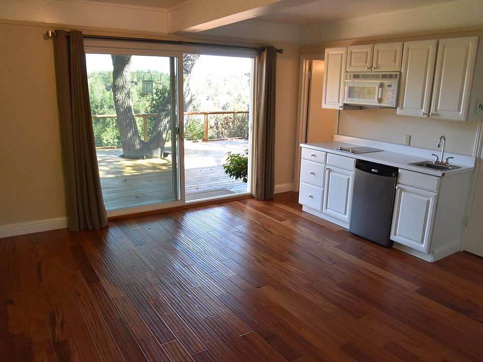 Studio for rent in Woodside. Located on almost 4 acres in Woodside, this cozy studio provides a tranquil, relaxing, and private setting. Enjoy sprawling views from the large tigerwood deck. Close access to Stanford, Hwy 280, hiking trails, and shopping. Carport parking, washer/dryer and extra storage are included. Owner pays gas, electricity, water, garbage, DirecTV, internet, gardener. *Square Footage shown includes outside deck Available 4/1/21, term length negotiable. Owner pays gas, electricity, water, garbage, DirecTV, internet, gardener