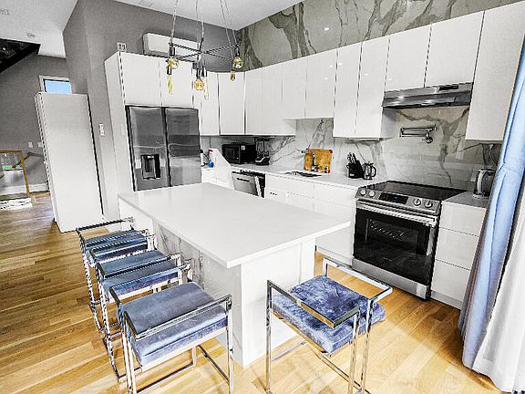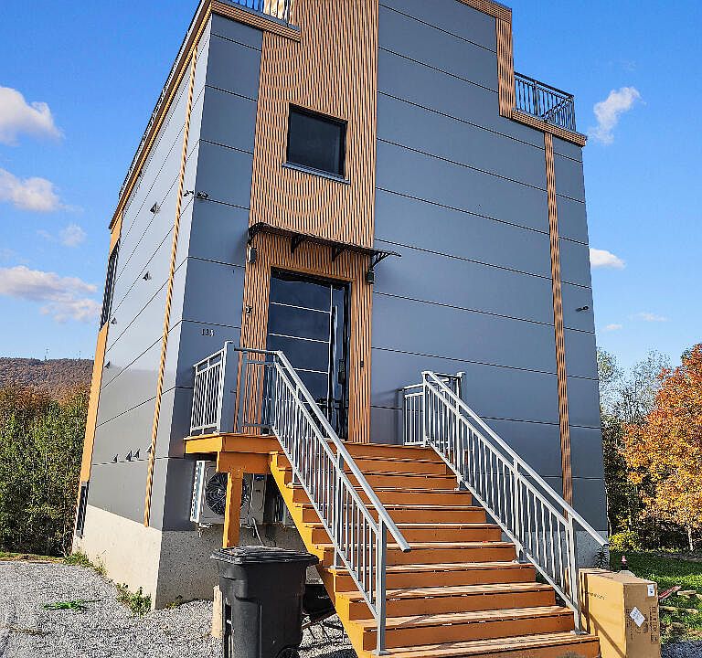 New construction modern home with 6 bedrooms, 3 baths in the Catskills. Features include solid oak floors, triple aluminum-glazed windows with thermobreak, propane radiant heat, mini-split HVAC, and fiber internet. Luxury finishes throughout with sintered stone large-format tiles and steam shower. Sleek Galvalume exterior and modern design. Enjoy panoramic mountain views from the rooftop deck with hot tub. Perfect as a primary residence, weekend retreat, or high-end rental near skiing, hiking, and village amenities.