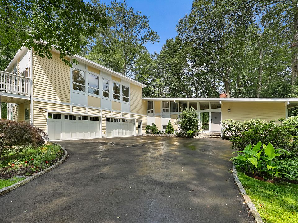 Move in ready! Spacious, sundrenched 4 bedroom, 4 bath home on cul-de-sac sits back on one landscaped acre in sought after "Trails" neighborhood of North Stamford with city water. A peaceful, outdoor oasis just minutes from shops, restaurants, and schools. Wonderfully maintained and renovated. Bright open floor plan with soaring cathedral ceilings, floor to ceiling windows, beautiful wood floors, and outdoor access to patios and decks throughout. Updated eat-in kitchen opens to family room with fireplace. Formal dining room, living room with fireplace and four-season sunroom offer wonderful options for entertaining. Large primary suite with office, sitting area, double walk-in closets and deck. Attached four-car garage. Whole house generator. Close to all of Stamford's amenities as well as Pound Ridge and Bedford.